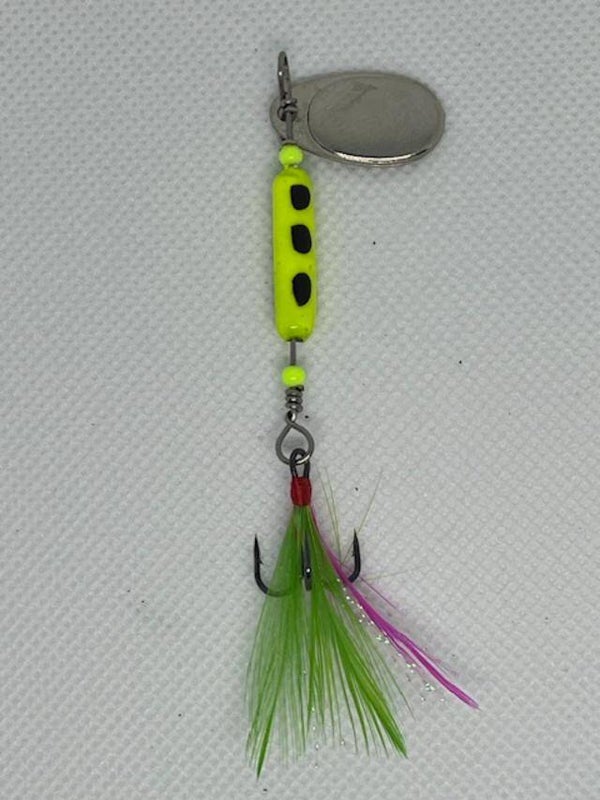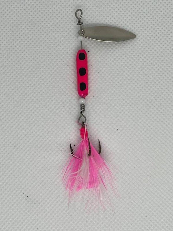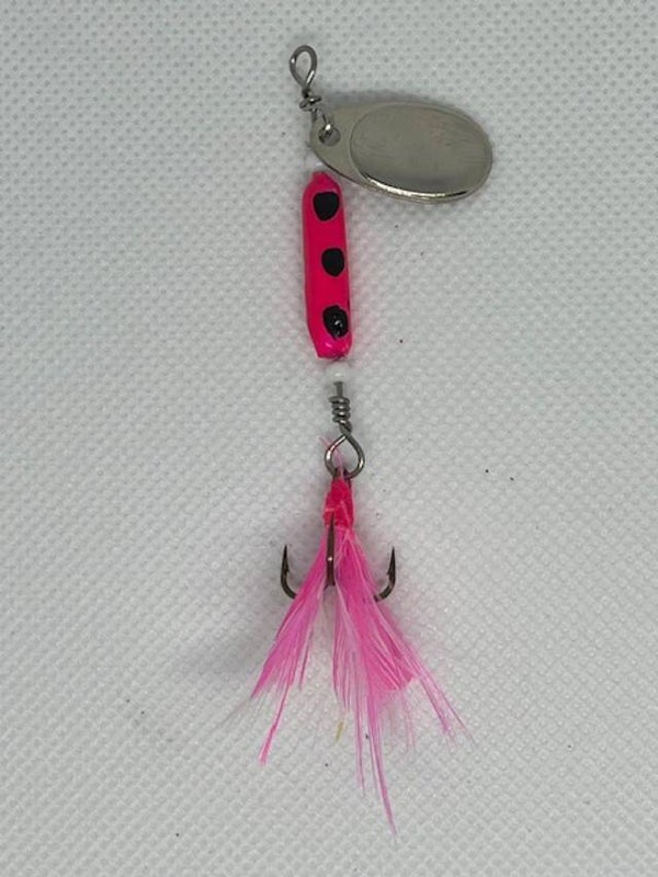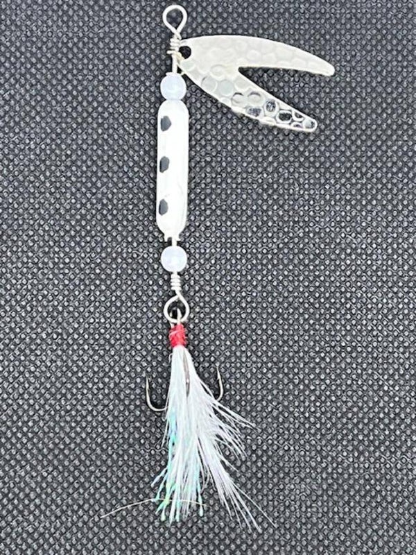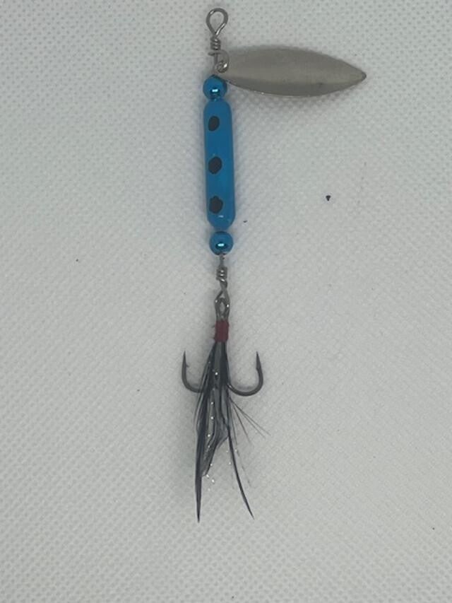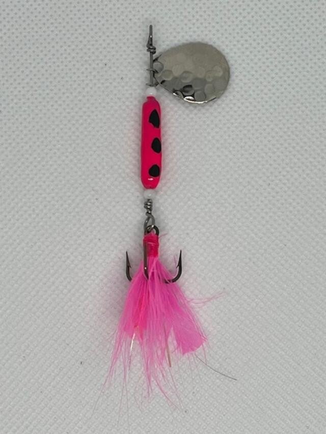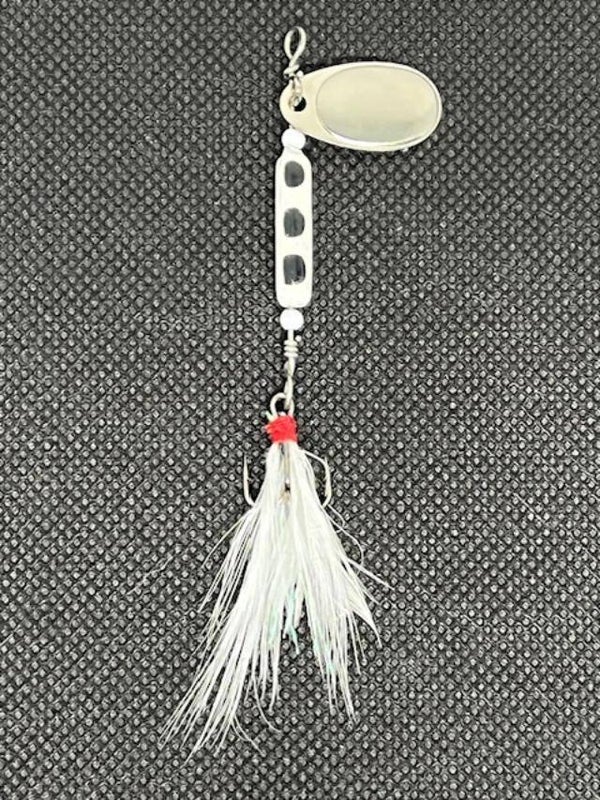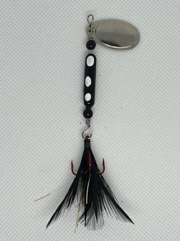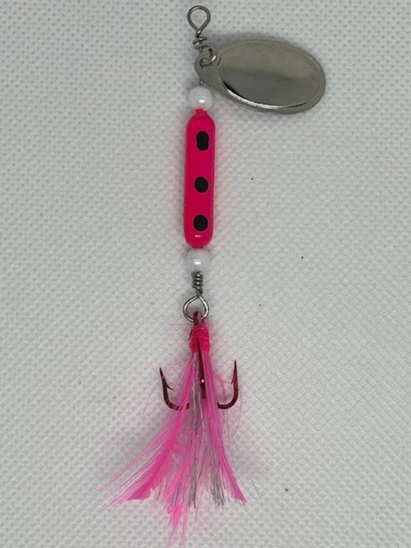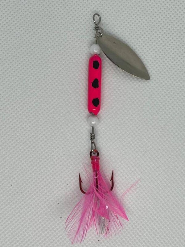 Spotted series will catch the eyes of the fish! 1/4oz comes with a #6 and 1/8oz comes with #8 hook. Also comes in multiple blade styles