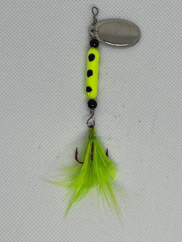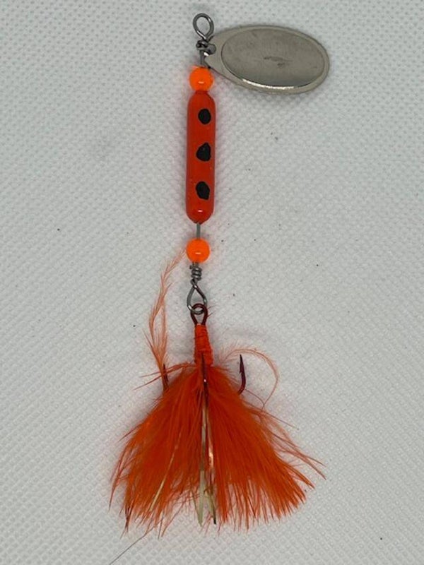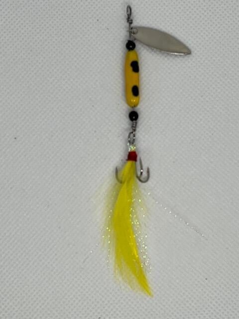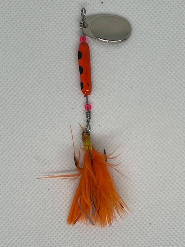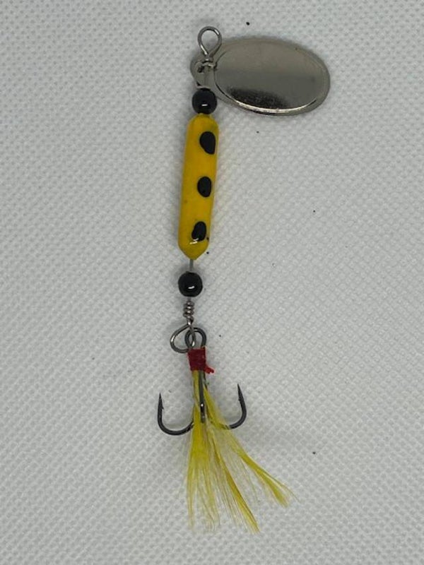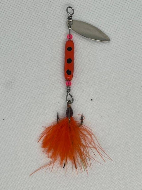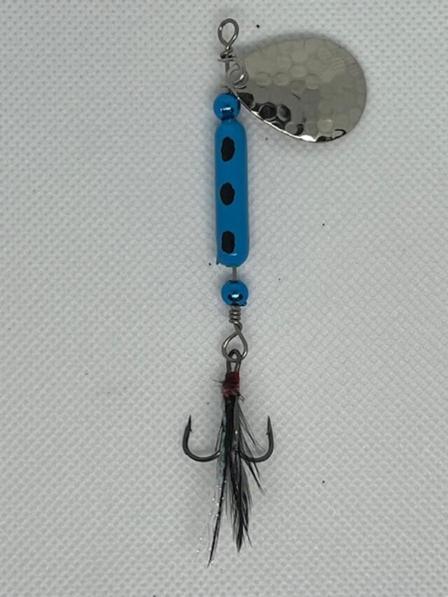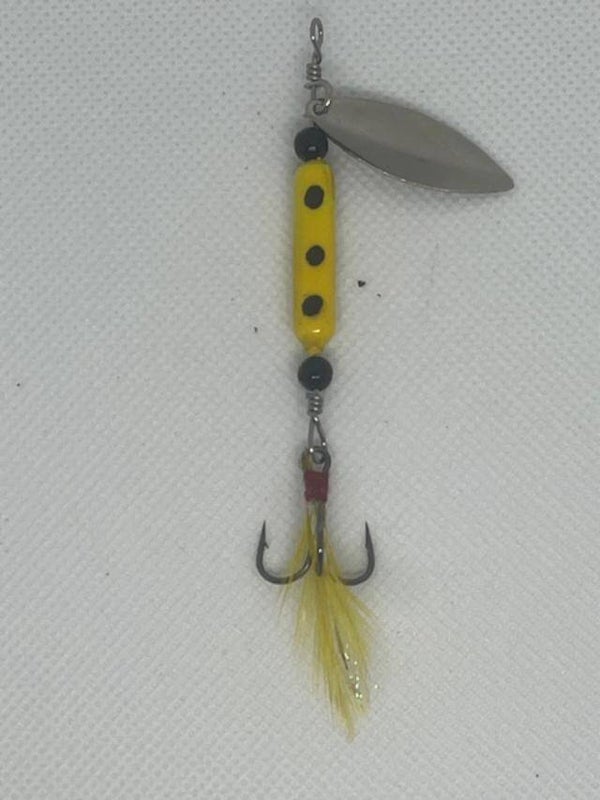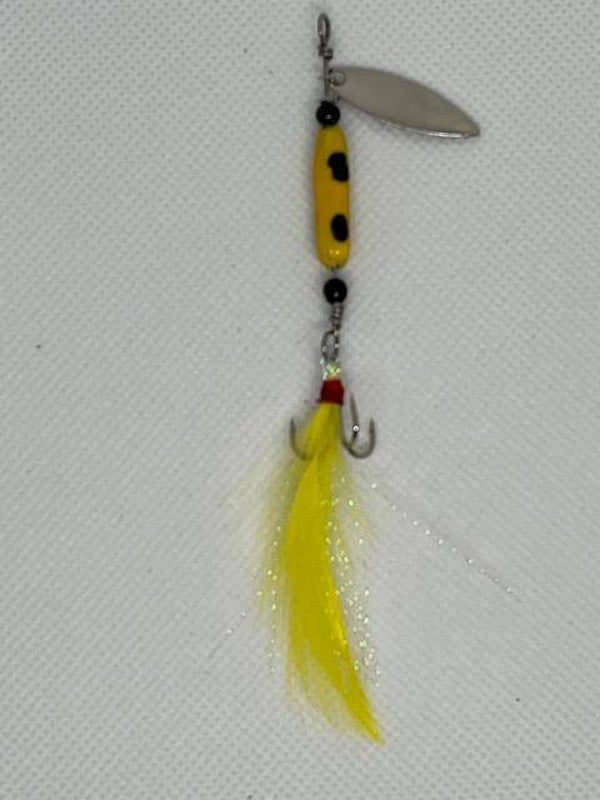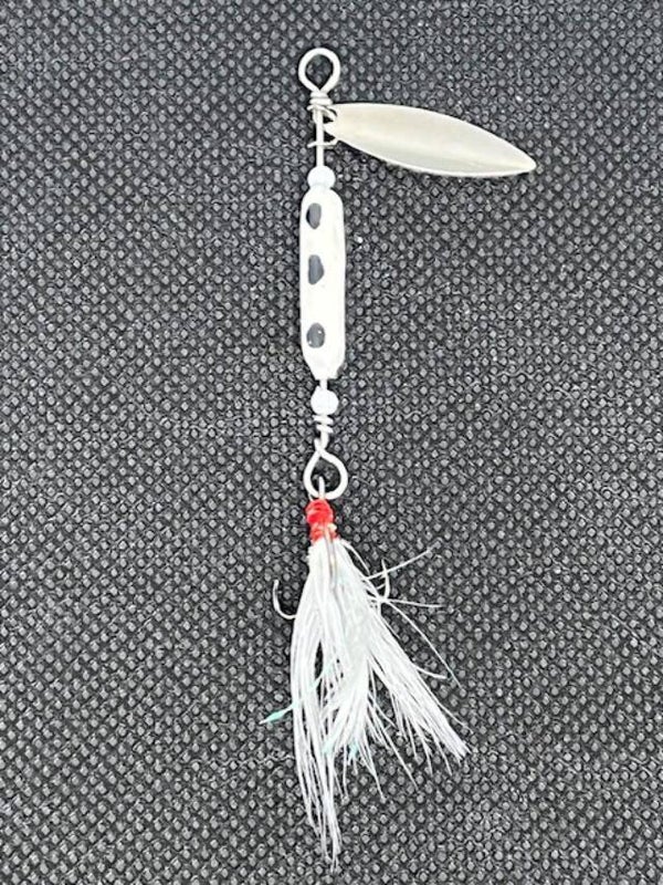 Spotted series will catch the eyes of the fish! 1/4oz comes with a #6 and 1/8oz comes with #8 hook. Also comes in multiple blade styles