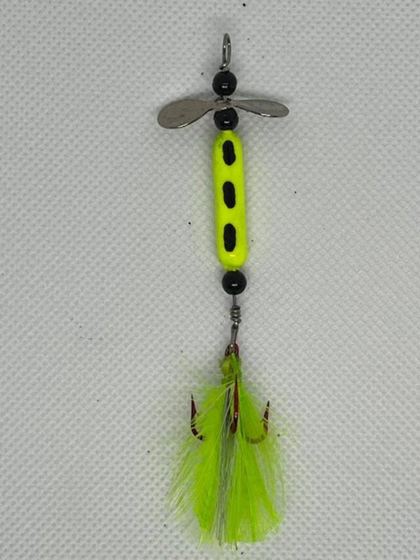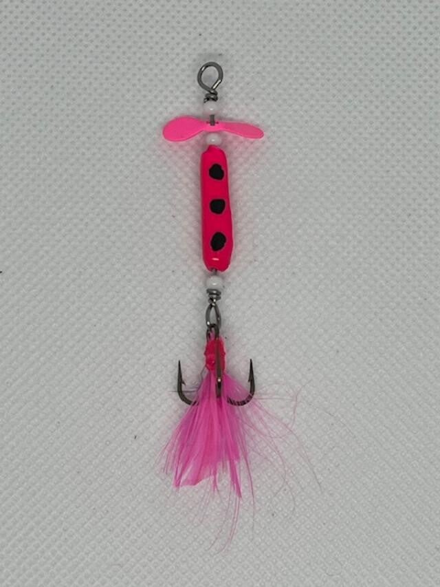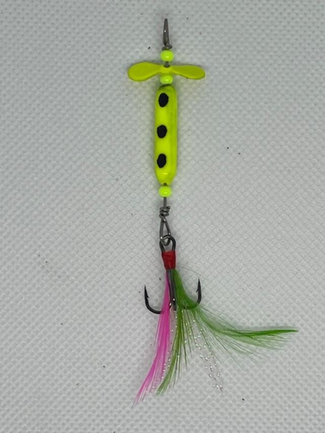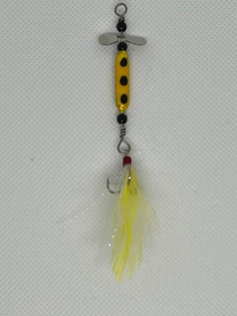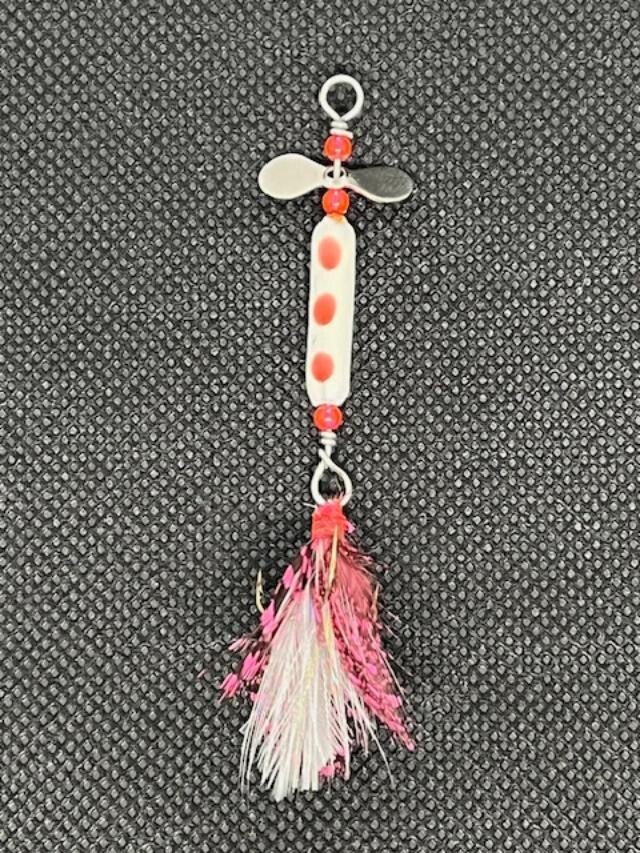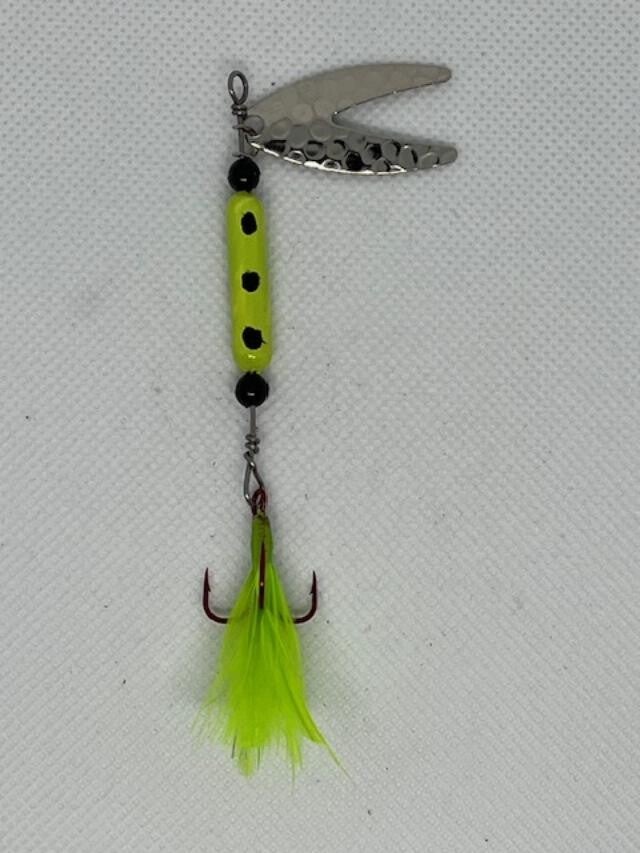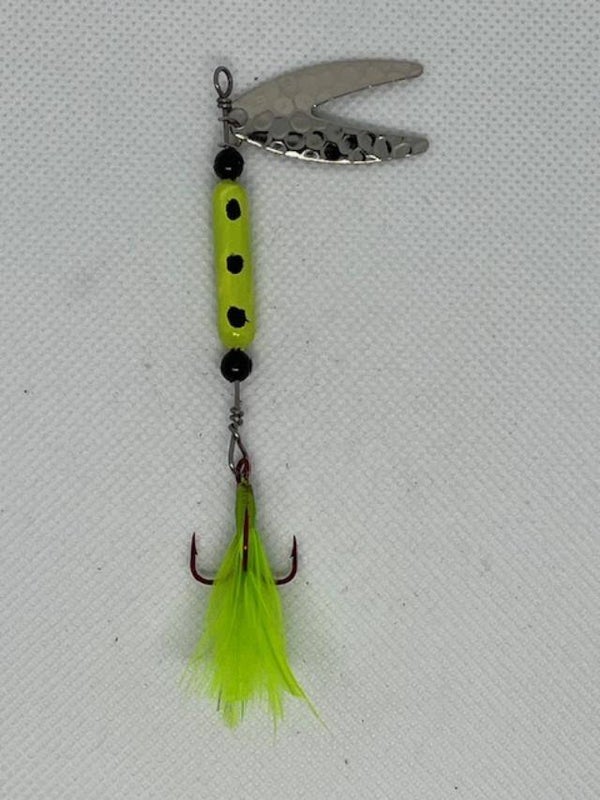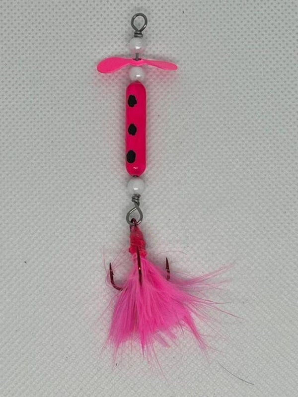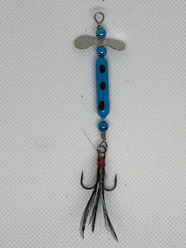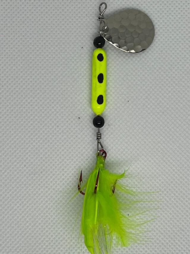 Spotted series will catch the eyes of the fish! 1/4oz comes with a #6 and 1/8oz comes with #8 hook. Also comes in multiple blade styles