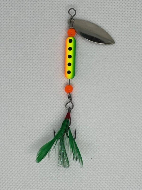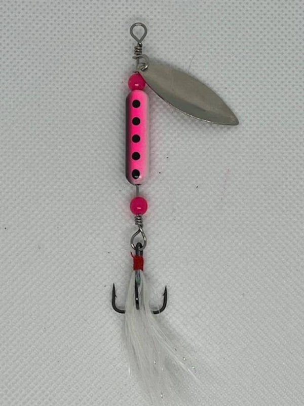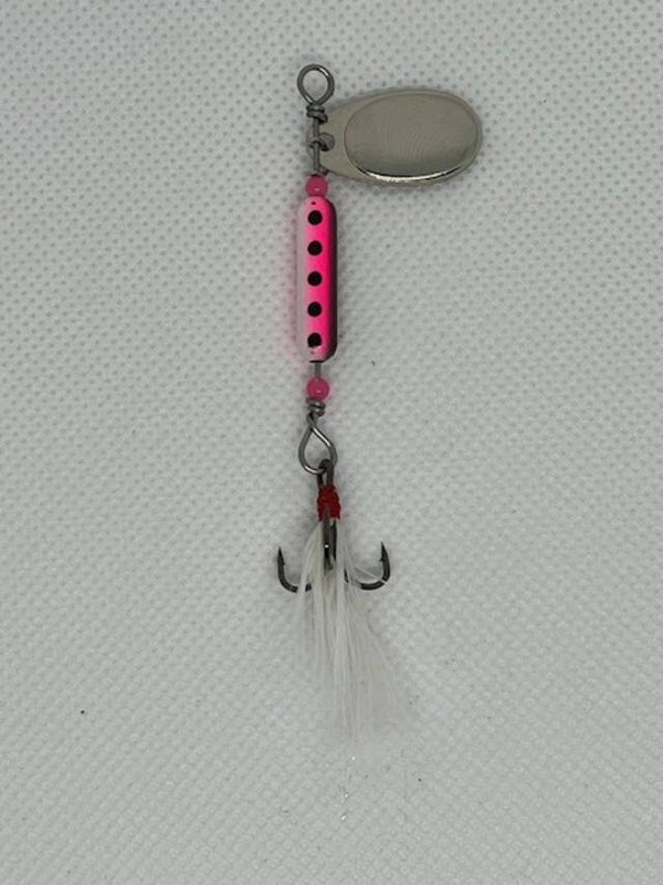 Shad and Trout style series on Simm Tails. 1/4oz comes with a #6 and 1/8oz comes with #8 hook. Also comes in multiple blade styles