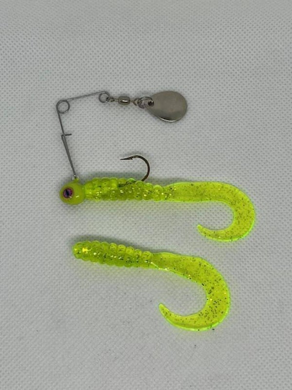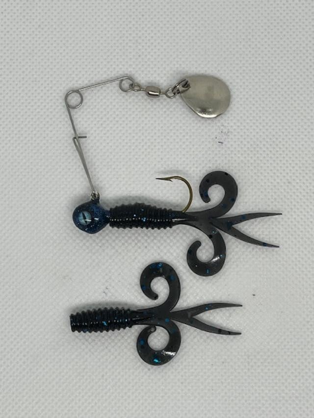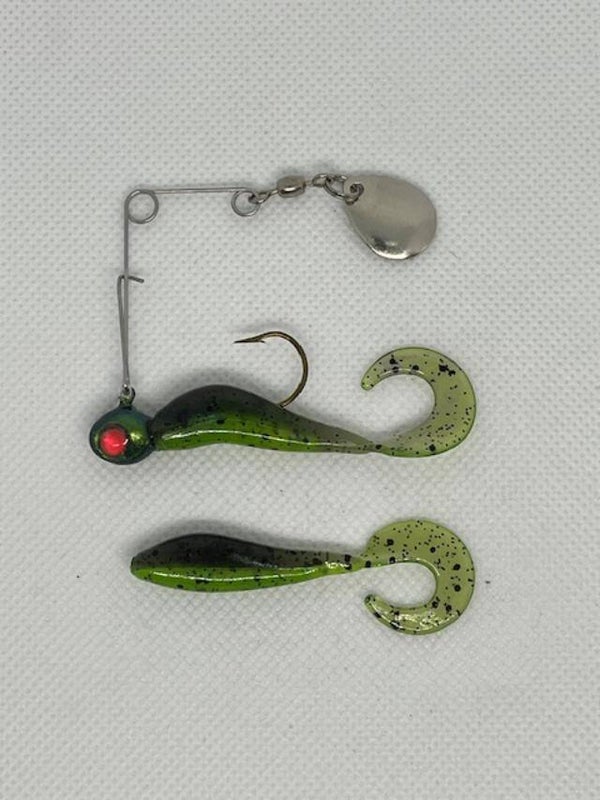 1/8oz jig with the added flash of the spinner. Comes with an extra body