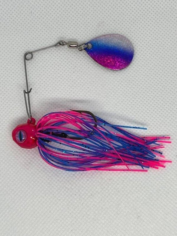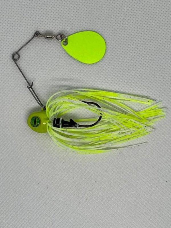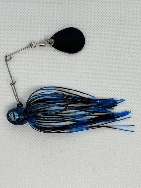 3/8th oz skirted jig 2/0 hook with the added flash of a matching painted spinner