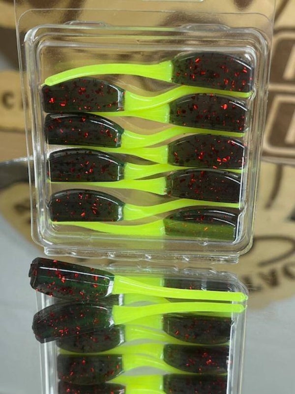 2.25" MINNOW, hook slot for optimal jigging performance. Wiggling tail action is sure to attract panfish. 10 per pack